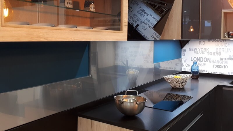 Les modèles d'épaisseur 17 et 20 mm sont particulièrement destinés aux grandes cuisines. Leur aspect massif les prédestine aux fonds de hotte situés derrière les pianos de cuisson. Cette épaisseur permet aussi de rattraper un défaut entre le mur et le plan de travail.