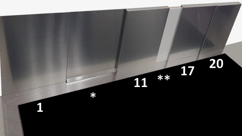 La gamme d’épaisseurs est vaste, 1, 6, 11, 17 ou 20 millimètres d’épaisseur. La simple plaque d’inox, souvent en épaisseur 1 ou 1.5 millimètres est facile à réaliser. Il suffit d’avoir un stock d’inox, une machine de découpe, pour réaliser une plaque. Des centaines d’ateliers de chaudronnerie ont la capacité à le faire. Notre gamme dispose de ce produit, économique, mais contrairement à un chaudronnier, nous réalisons ces plaques avec le même inox que nos autres crédences. Achetez notre produit, vous serez certain que le nettoyage, la qualité du brossage sera certainement adaptée à l’utilisation en cuisine pour particulier. Crédence inox ne réalise pas de plaque d’épaisseur 1.5 millimètre pour la simple raison que la série ECO de 6 millimètres d’épaisseur est mieux finie et moins chère.