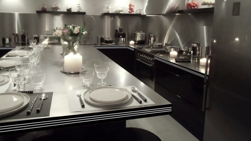 Les plus de notre gamme de plans de travail sont leur résistance, leur facilité d’entretien, le design innovant ainsi que la grande possibilité de formes. Insérer les éviers, les cuves et même les plaques de cuisson à fleur de votre plan de travail inox pour une cuisine lisse, facile à nettoyer. L’industrialisation permet d’afficher des délais de réalisation de votre plan de travail (2 à 3 semaines) et en conséquence des tarifs très raisonnables. Crédence inox propose donc un produit de qualité supérieure à ce que l’on trouve habituellement. Nos inox pour plan de travail respectent la norme alimentaire stricte NF A 36-711 sont dits non magnétiques, car il est désagréable d’avoir des objets qui s’aimantent sur un plan de travail.