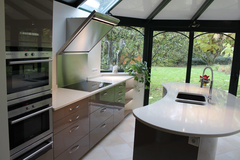 Le raccord entre les deux parties sera réalisé derrière la hotte et sera donc invisible.