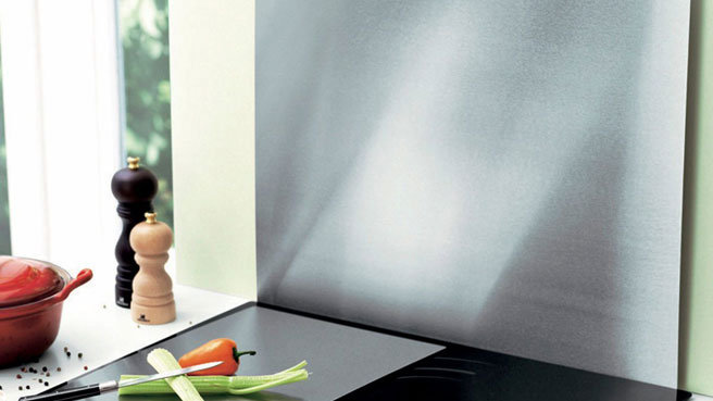 Si vous ne souhaitez pas recouvrir la totalité de votre plan de travail d'une plaque de métal, sachez que celle-ci peut prendre place seulement derrière la plaque de cuisson. Elle protége ainsi le mur, facilite le nettoyage et apporte une touche très déco !