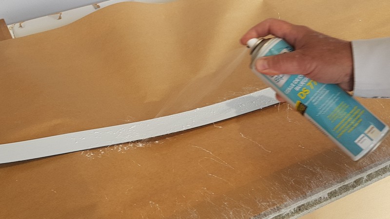 Avant de mettre la colle, nous conseillons de protéger le dessus du plan de travail avec un adhésif. Eh oui, la colle que nous vous conseillons est en aérosol. Si vous collez un chant sur un plan de travail avec led, il faut aussi protéger les bandes de Led.