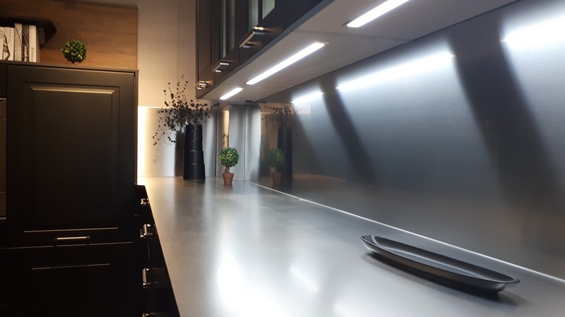 La très belle exposition à Fréjus chez Ixina met en valeur nos plans de travail et nos crédences. Le choix met en valeur les produits suivants: Crédences sur mesure, Colum qui permet de réaliser un angle externe sans raccord, le plan de travail en inox structuré lin, les plaques de cuisson et cuves à fleur de plan et le nouveau plan avec chant noir mat qui s'accorde parfaitement avec les façades noir mat Ixina.