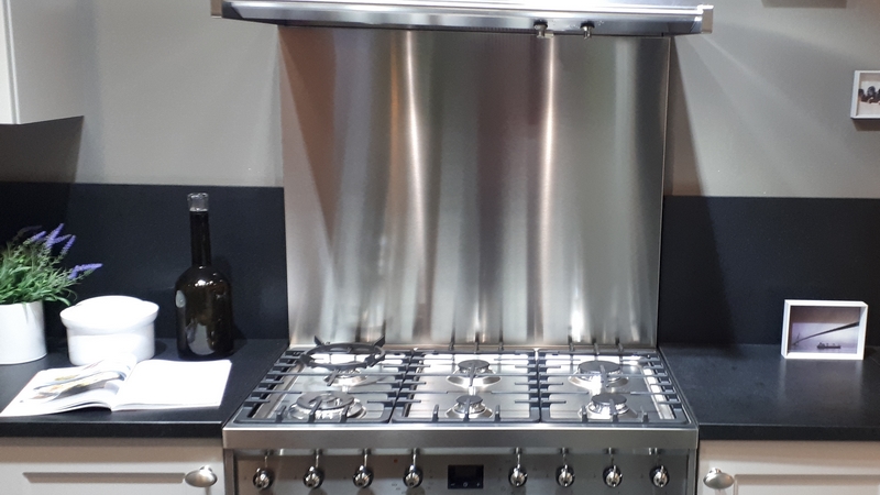 Quoi de plus normal qu'une crédence en inox derrière un piano de cuisson. Tous les grands chef intègrent plan de travail et crédences en inox. Dans l'émission tous en cuisine, on remarque la belle cuisine de Cyril Lignac. Plan de travail tout inox épaisseur 20 mm, Plaque de cuisson et évier à fleur de plan et crédence en inox miroir.
