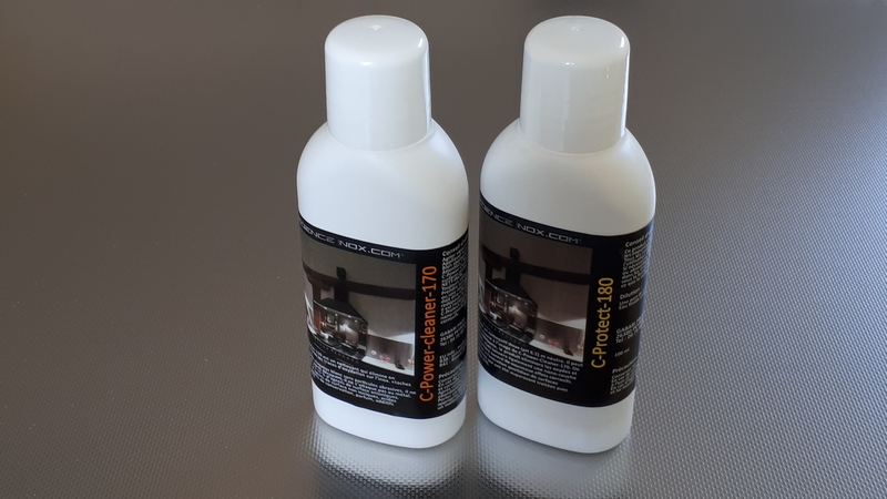 C-Protect-180 : est à utiliser après l'emploi de C-Power-cleaner 170. Ce produit est un pacifiant, il empêchera l'apparition de nouvelles taches. Votre inox, redevenu neuf, le restera longtemps. C'est un produit nettoyant doux qui s'emploie après l’usage de C-Power-Cleaner-170. De par son action, le produit éliminera les oxydes et les contaminants, mais laissera également une nano-couche qui servira de barrière contre de nouvelles agressions. Flacon de contenance 100ml