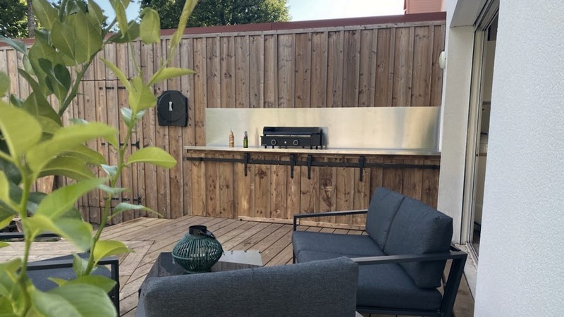 Pour le choix du barbecue, une simple plancha devrait suffire. Et il est conseillé de le choisir chez un spécialiste. En effet, choisir une plancha à gaz permettra de choisir la bonne taille du barbecue afin qu'il soit en adéquation avec le plan de travail. L'avantage avec la plancha est qu'elle est facile à porter, mais aussi à nettoyer.