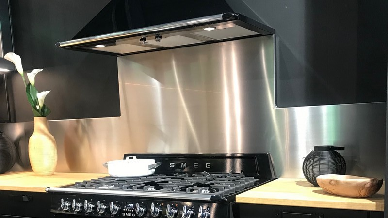 Le seul avantage à nos yeux d'une tôle d'inox collée au mur, même découpée sur mesure est le prix... Et encore, il faut y regarder de près.