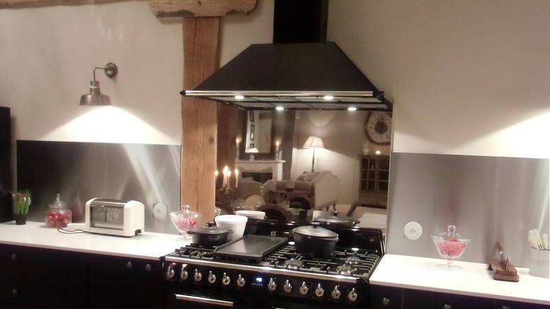 Sur une cuisine ouverte, donc une grande pièce, tapisser le mur avec du miroir n'est pas forcément judicieux. Dans ce cas, Crédence inox vous recommande de ne pas utiliser trop d’inox miroir. Il n'y a pas de besoin d'agrandir la pièce. Le fond de hotte inox miroir se marie très bien avec les crédences de côté en inox brossé. Conjuguer les deux inox met en valeur l'espace cuisson. Dans ce cas, optez pour un fond de hotte en inox miroir épais, (17 millimètres) et sélectionnez des crédences en inox brossé plus fines, (11 millimètres). Le raccord entre les crédences sera intégré dans le décalage d'épaisseur offrant ainsi un design flatteur. Le mélange des deux inox est distingué, moderne et assure de ne faire aucune faute de gout sur le choix des matières et des couleurs.
