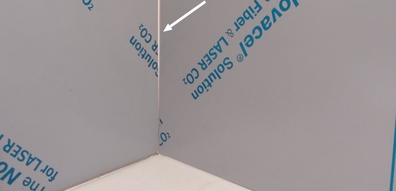 Il est facile de comprendre sur la présentation ci dessous que l'épaisseur 0.8 mm permet un pliage bord à bord dans les angles. Plus la plaque est épaisse, plus le pliage est grossier. Cela crée un vide inesthétique dans les angles. Dans ce cas, il convient de combler l'espace par une soudure. Le prix de la crédence devient élevé inutilement.