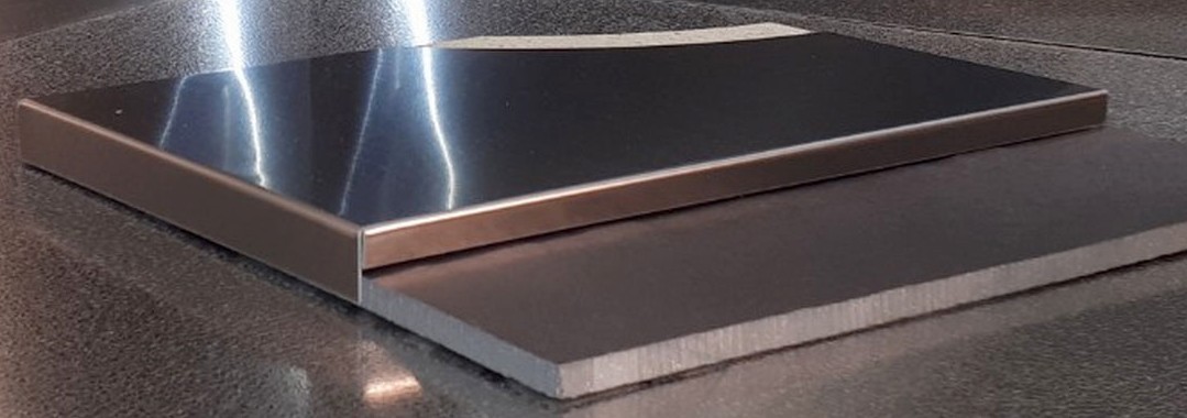 Si votre carrelage est bien plat, vous pourrez commander une plaque d'inox avec les bords pliés (11 mm) et la coller directement sur vos carreaux.