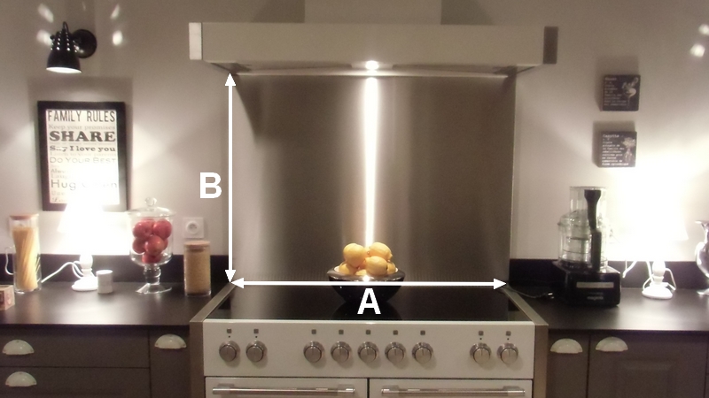 Crédence-inox a développé une très importante gamme de fond de hotte. Le saviez-vous ? la crédence en inox brossé est la plus vendue. La fonction principale du fond de hotte est de protéger le mur des projections lorsque l’on cuisine. Le fond de hotte doit résister aux températures, aux détergents, et donc l’inox est la matière la mieux adaptée pour cela. L’inox résiste bien aux fortes températures et l’inox se nettoie facilement et est très résistant aux agressons chimiques. Toutes les crédences de Crédence inox sont compatibles plaques de cuisson gaz. Côté déco, l’inox se marie avec toutes les couleurs ou ambiances. Crédence inox a développé des fonds de hotte avec plusieurs types de traitement d’inox. L’inox brossé, L’inox patiné vibré, L’inox poli miroir, l’inox en relief toujours facile à nettoyer imitant le cuir ou encore un textile style toile de lin. Cela permet de jouer avec le design, mais aussi chacun a son lot d’avantages. Vous y trouverez sans aucun doute le vôtre, mais comment bien choisir la hauteur, la largeur et l’épaisseur qui vous convient ?