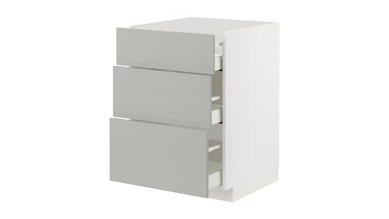 Découvrez le meuble de cuisine parfait qui allie fonctionnalité et élégance : un tiroir spacieux et deux casseroliers en inox, le tout sans poignées pour un look épuré et moderne.
