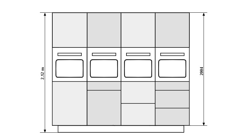 La hauteur du caisson (Meuble de cuisine) est selon le choix de 1,70 m (1.82 avec les pieds) OU 2,00m . Les plinthes ne sont pas fournies et sont à commander séparément. (Hauteur conseillée 12 cm).