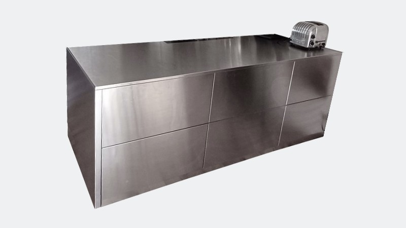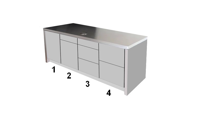 Notre Ilot central inox est contemporain, au design très épuré. Le plateau est en inox, Vous pouvez y intégrer une cuve et / ou une plaque de cuisson avec aspiration intégrée en pose affleurante. Le dos de L'ilot central est en inox. Les façades sont alignées au plateau et sans aucune poignée. Il suffit de pousser légèrement la porte ou le tiroir pour qu'il s'ouvre. les plinthes sont de hauteur 12 centimètres. La profondeur de l'ilot central est de 61 centimètres
