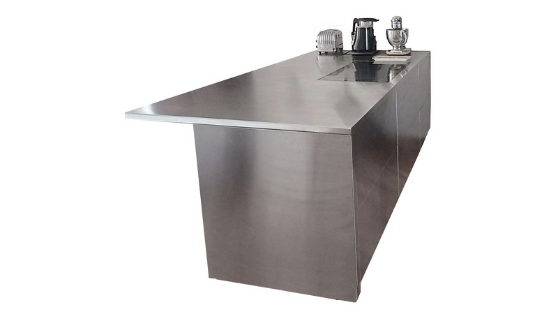 Notre Ilot central inox plan snack est contemporain, au design très épuré.