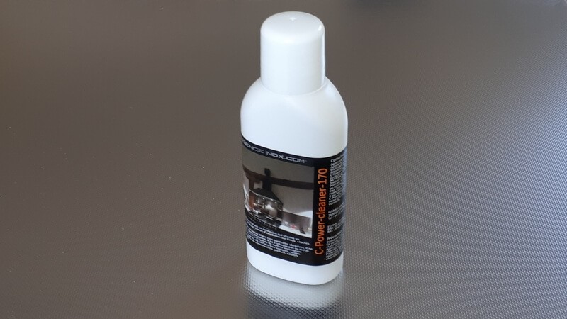 C-Power-Cleaner-170 est un nettoyant qui élimine en profondeur toutes les traces d'oxydation sur l’inox. C’est un liquide visqueux blanc sans particules abrasives. Le produit convient à un nettoyage intensif de surfaces contaminées par toute forme de corrosion, « taches de thé, etc.… ». Il ne s’agit en aucun cas d’un agent décapant, car il ne s’attaque pas au métal. Ce produit est inoffensif à l’égard des métaux, mais très agressif envers les oxydes et les impuretés. Ce produit est unique, car il est 100% organique et ne présente aucun danger ni pour l’homme, ni pour l’environnement. De ce fait, C-Power-Cleaner-170 peut même servir à l’entretien de matériel utilisé par l’industrie alimentaire.