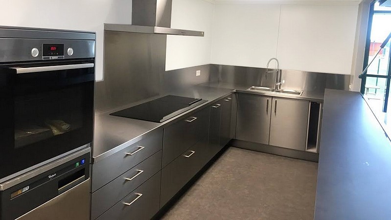 Pour réaliser un plan de travail en U: Définissez et ajoutez les TROIS plans de travail dans le panier d'achat, puis positionnez les entre eux ici(dimensions C- D - E). Les raccords seront ainsi automatiquement au bon endroit. Nos plans de travail se recoupent facilement avec une simple scie circulaire. Avec l'assemblage d'angle fixe, nous vous fournissons une lame de scie spéciale inox. Vous pourrez si besoin déligner le plan de travail lors de la pose. Notre conseil avec un défaut d'équerrage de vos murs: Commandez votre plan de travail plus profond pour l'ajuster sur place, comme on le fait avec un plan de travail en stratifié. Ce produit contient, les ferrures d'assmblage, une lame de scie inox alesage 20 D 160 et la réalisation sur les plans de travail des encoches pour les ferrures.